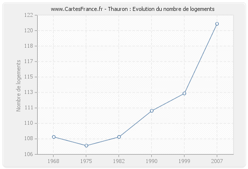 Historique du nombre de logements de Thauron de 1968 à 2007 :