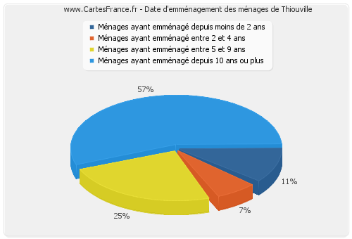 - Nombre de ménages de Thiouville ayant emménagé depuis 10 ans ou plus : 60