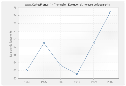 Historique du nombre de logements de Thonnelle de 1968 à 2007 :