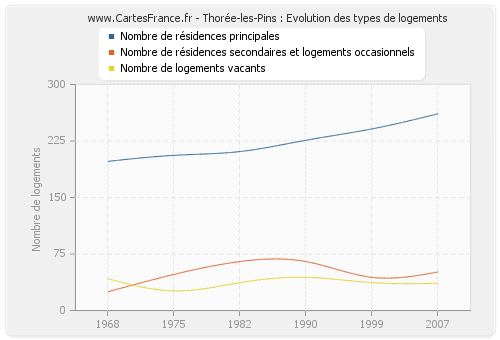 - Nombre de résidences principales de Thorée-les-Pins en 2007 : 261