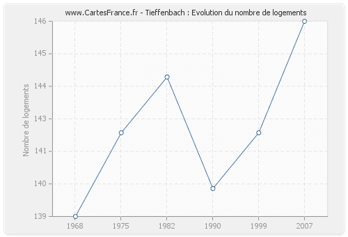 Historique du nombre de logements de Tieffenbach de 1968 à 2007 :
