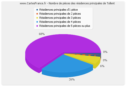 - Nombre de résidences principales de Tollent d'une pièce : 0