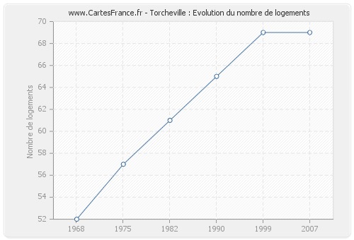 Historique du nombre de logements de Torcheville de 1968 à 2007 :