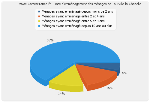- Nombre de ménages de Tourville-la-Chapelle ayant emménagé depuis moins de 2 ans : 10