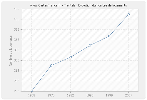 Historique du nombre de logements de Trentels de 1968 à 2007 :