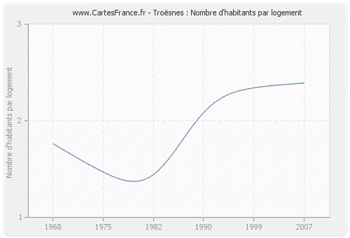 - Nombre d'habitants moyen par logement de Troësnes en 1968 : 1,76