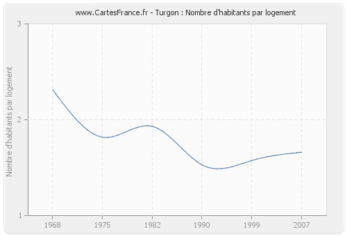 - Nombre d'habitants moyen par logement de Turgon en 2007 : 1,66