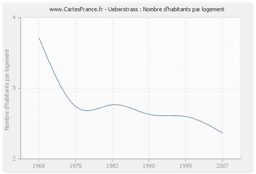 - Nombre d'habitants moyen par logement d'Ueberstrass en 2007 : 2,37