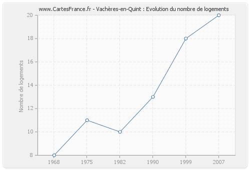 Historique du nombre de logements de Vachères-en-Quint de 1968 à 2007 :