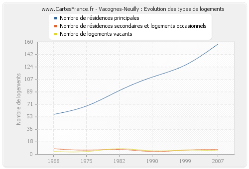 - Nombre de résidences principales de Vacognes-Neuilly en 2007 : 157