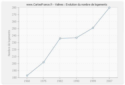 Historique du nombre de logements de Valines de 1968 à 2007 :