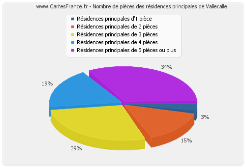 - Nombre de résidences principales de Vallecalle de trois pièces : 17