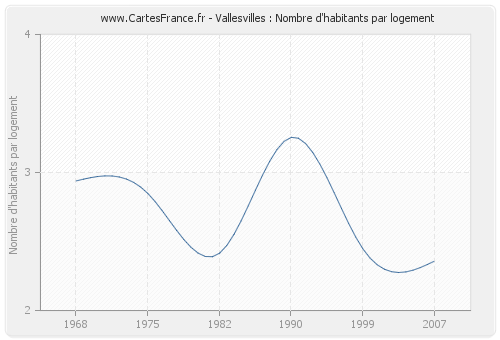 - Nombre d'habitants moyen par logement de Vallesvilles en 2007 : 2,36