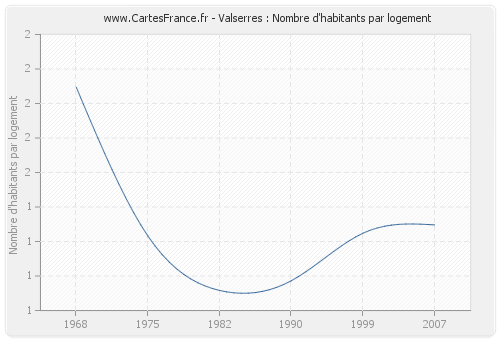 - Nombre d'habitants moyen par logement de Valserres en 1968 : 1,83