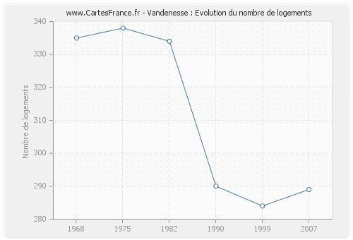Le nombre de logements de Vandenesse était de 289 en 2007, 284 en 1999, 290 en 1990, 334 en 1982, 338 en 1975 et 335 en 1968.