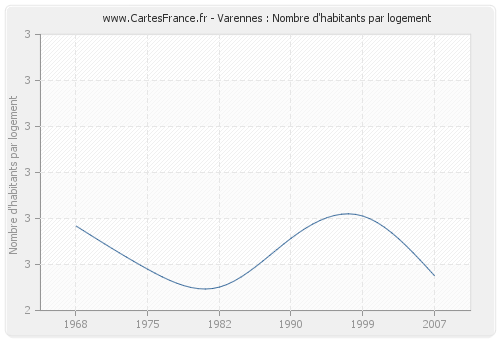- Nombre d'habitants moyen par logement de Varennes en 2007 : 2,48