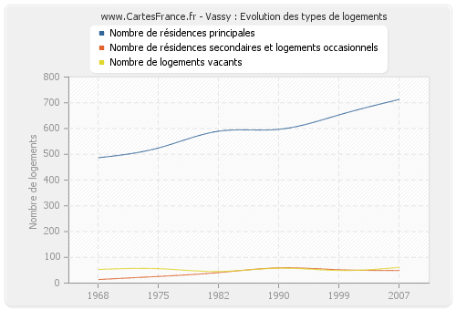 - Nombre de résidences principales de Vassy en 2007 : 713