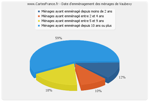- Nombre de ménages de Vaubexy ayant emménagé depuis 10 ans ou plus : 29