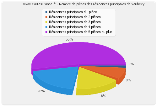 - Nombre de résidences principales de Vaubexy de cinq pièces et plus : 27