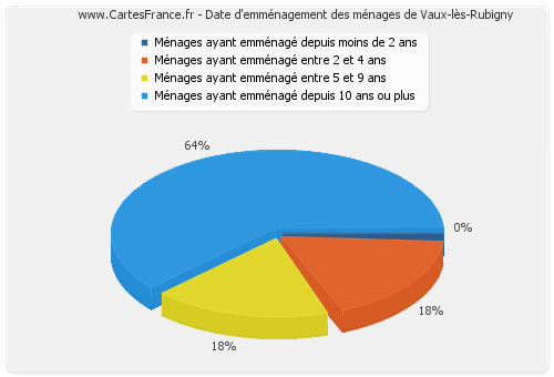 - Nombre de ménages de Vaux-lès-Rubigny ayant emménagé depuis 10 ans ou plus : 14