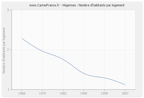 - Nombre d'habitants moyen par logement de Végennes en 1968 : 2,28