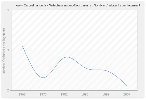 - Nombre d'habitants moyen par logement de Vellechevreux-et-Courbenans en 2007 : 2,12