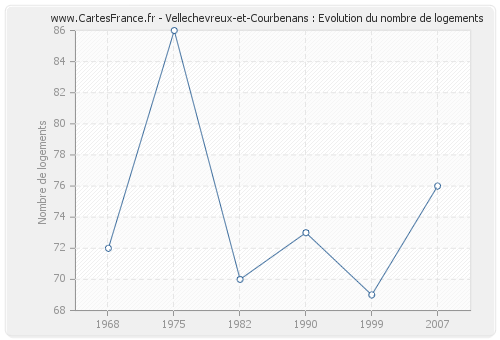 - Logements de Vellechevreux-et-Courbenans en 2007 : 76