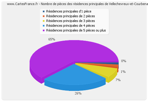 Nombre de pièces des résidences principales de Vellechevreux-et-Courbenans en 2007 :