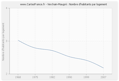 - Nombre d'habitants moyen par logement de Verchain-Maugré en 2007 : 2,18