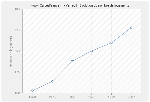 Historique du nombre de logements de Verfeuil de 1968 à 2007 :