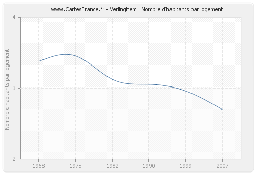 La Ville de Verlinghem avait en 2007 une moyenne de 2,70 habitants par logement.