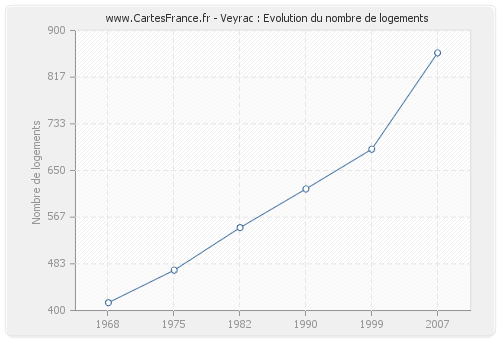 Historique du nombre de logements de Veyrac de 1968 à 2007 :