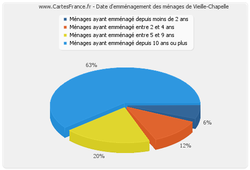 - Nombre de ménages de Vieille-Chapelle ayant emménagé depuis moins de 2 ans : 15