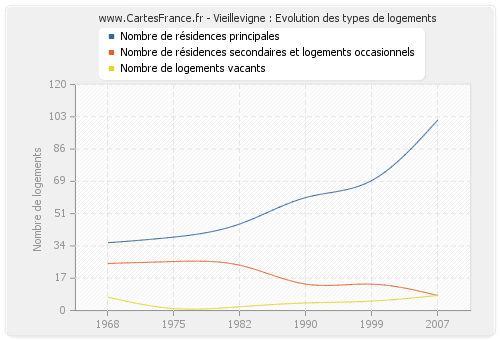 - Nombre de résidences principales de Vieillevigne en 2007 : 101