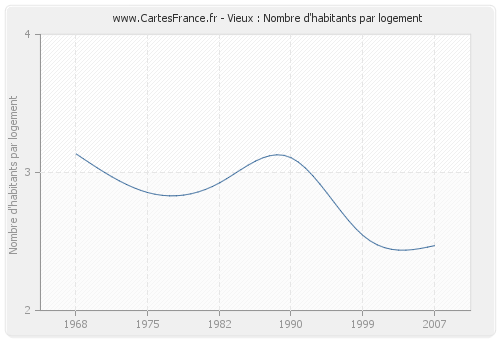 - Nombre d'habitants moyen par logement de Vieux en 2007 : 2,47