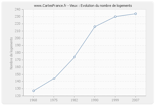 Historique du nombre de logements de Vieux de 1968 à 2007 :