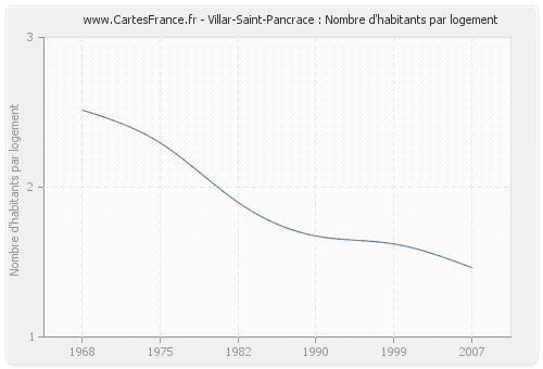 - Nombre d'habitants moyen par logement de Villar-Saint-Pancrace en 2007 : 1,46