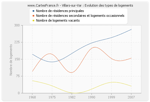 Historique du nombre de logements de Villars-sur-Var de 1968 à 2007 :