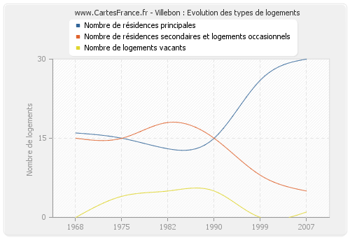 - Nombre de résidences principales de Villebon en 2007 : 30