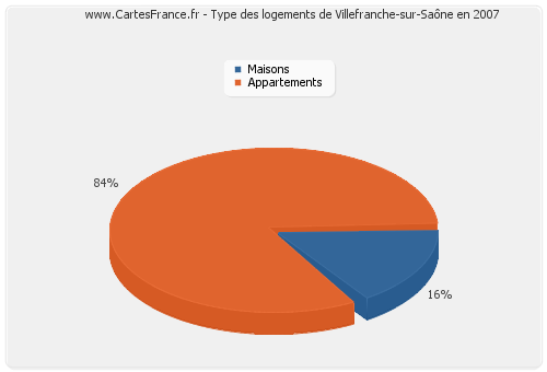 Les logements de Villefranche-sur-Saône étaient composées en 2007 de 2 676 maisons et 14 050 appartements.