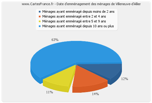 - Nombre de ménages de Villeneuve-d'Allier ayant emménagé depuis moins de 2 ans : 18
