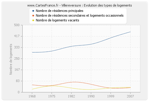 - Nombre de résidences principales de Villereversure en 2007 : 450