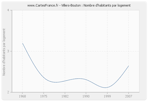 Le Village de Villers-Bouton avait en 2007 une moyenne de 2,64 habitants par logement.