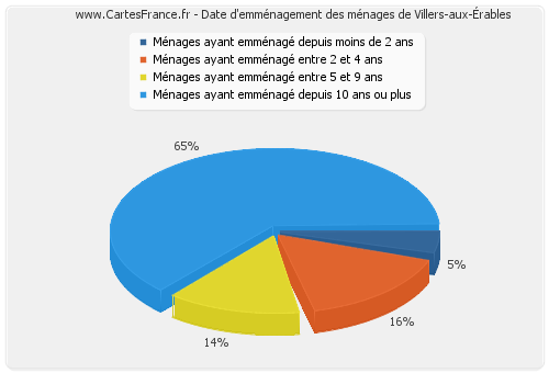- Nombre de ménages de Villers-aux-Érables ayant emménagé depuis 10 ans ou plus : 28
