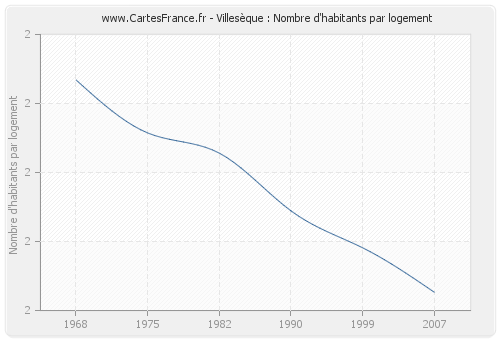 - Nombre d'habitants moyen par logement de Villesèque en 1968 : 1,93