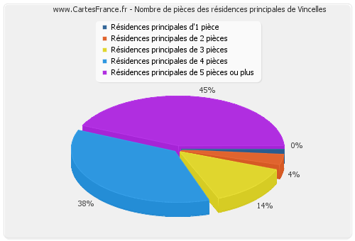 - Nombre de résidences principales de Vincelles de quatre pièces : 65