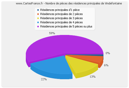 - Nombre de résidences principales de Vindefontaine de cinq pièces et plus : 70
