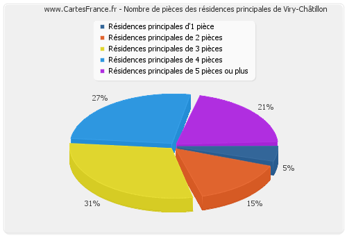 Nombre de pièces des résidences principales de Viry-Châtillon en 2007 :