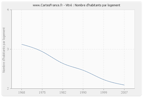 La Ville de Vitré avait en 2007 une moyenne de 2,09 habitants par logement.
