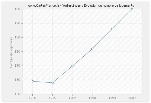 Historique du nombre de logements de Vœllerdingen de 1968 à 2007 :